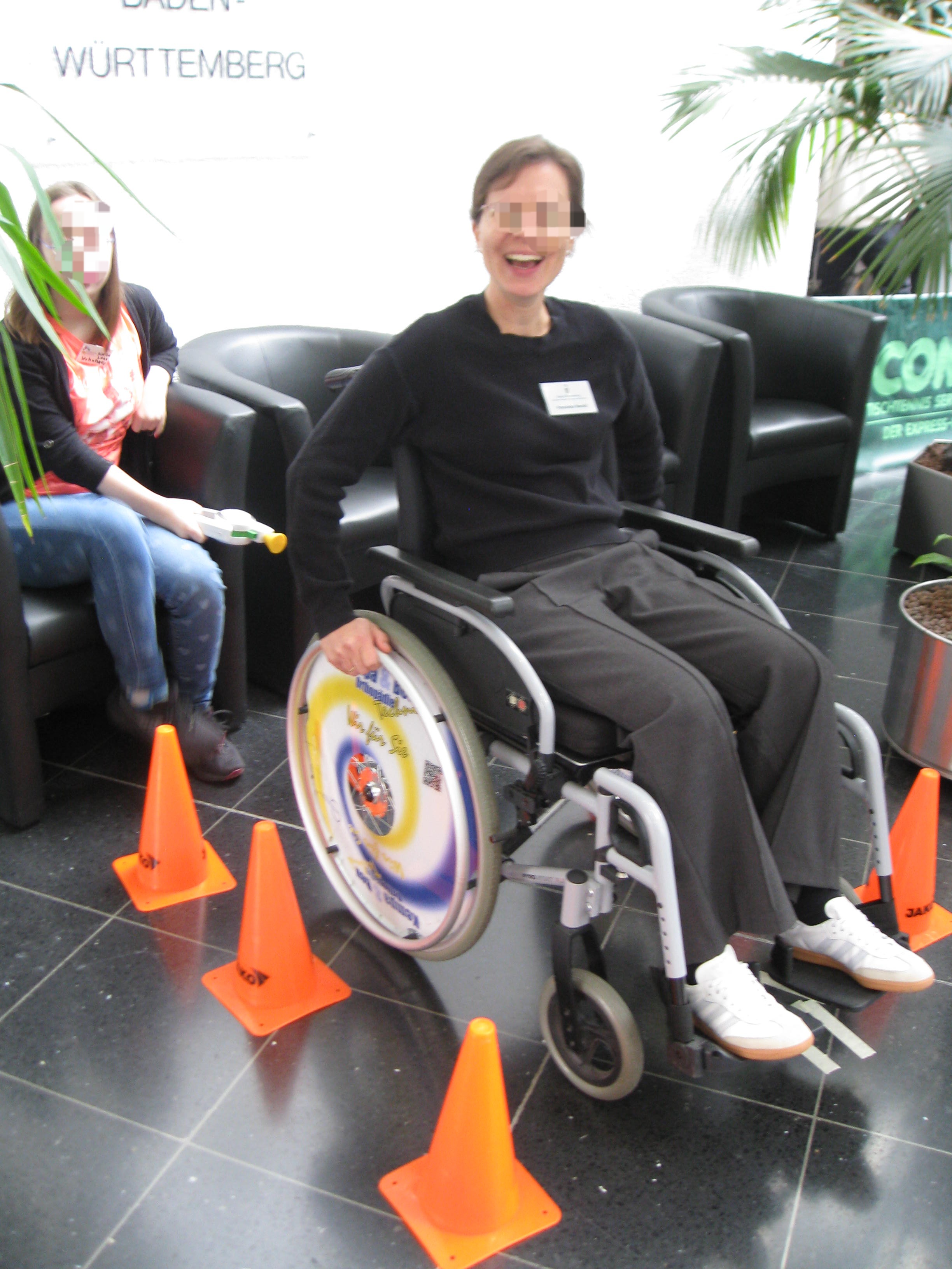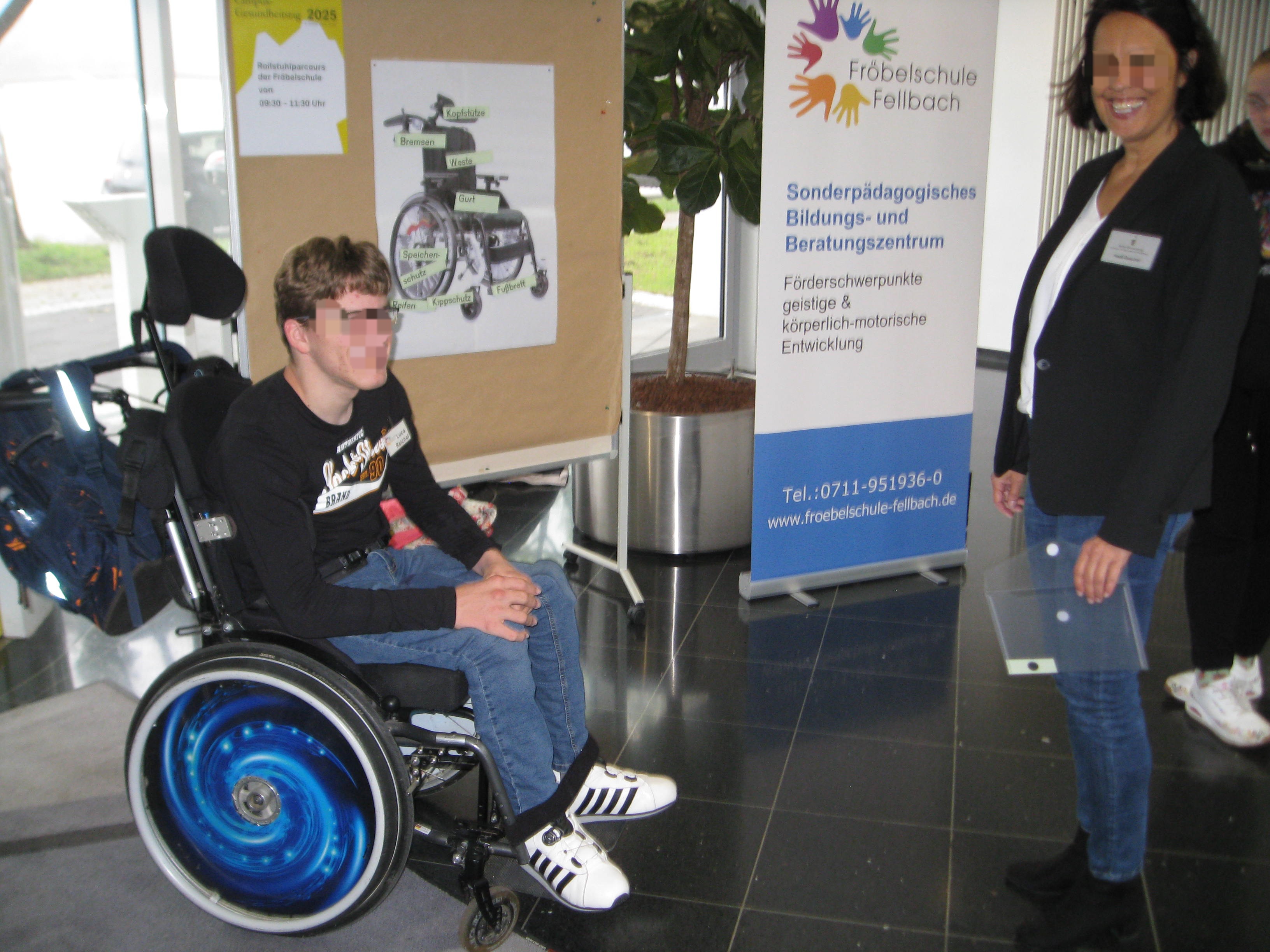 Im Oktober 2025 fand der Gesundheitsamt im Landesamt für Besoldung und Versorgung in Fellbach statt. Die Berufschulstufe der Fröbelschule Fellbach ermöglichte den Mitarbeitern einen Einblick in den Umgang mit dem Rollstuhl zu sammeln. Rund um das Thema "Rollstuhl" konnten Erfahrungen gemacht werden. Das Einparken auf dem Rollstuhlparkplatz war für nicht geübte Rollstuhlfahrer eine besondere Herausforderung.